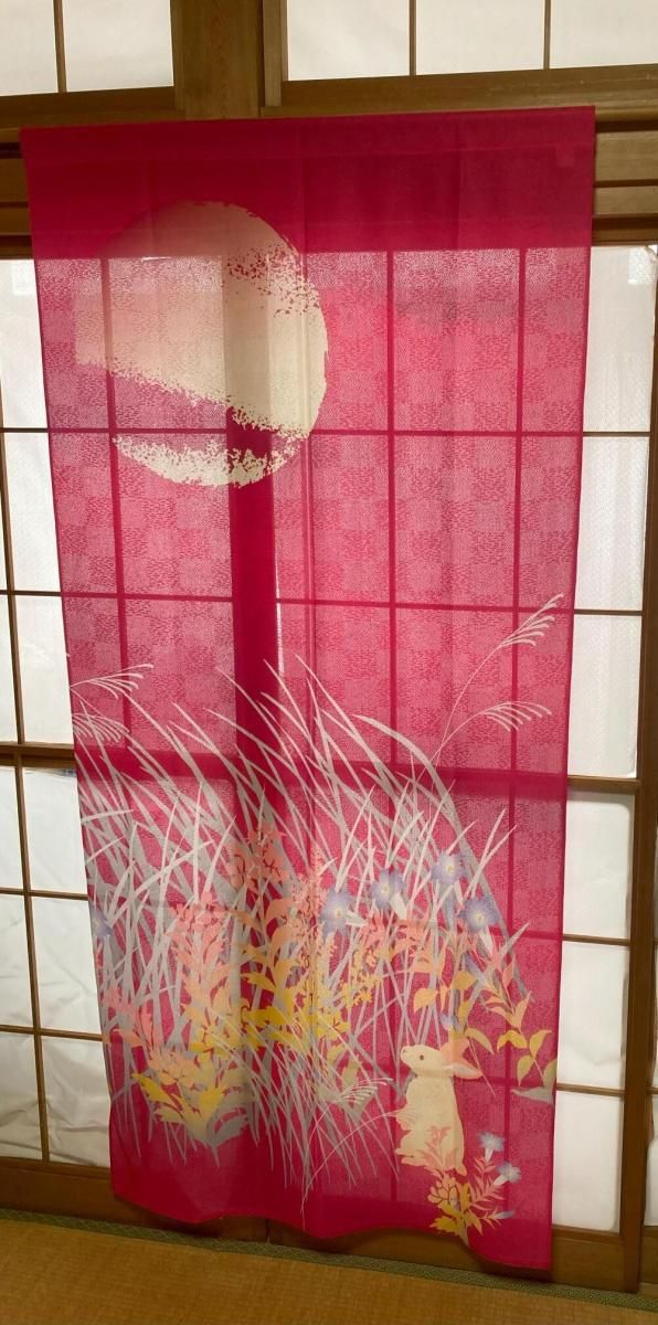 和風のれんタペストリー【朧月にうさぎ】(W850xH1800mm)ロング丈