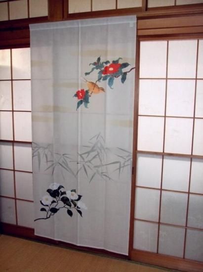 和風のれんタペストリー【冬椿】(W850xH1800mm)ロング丈